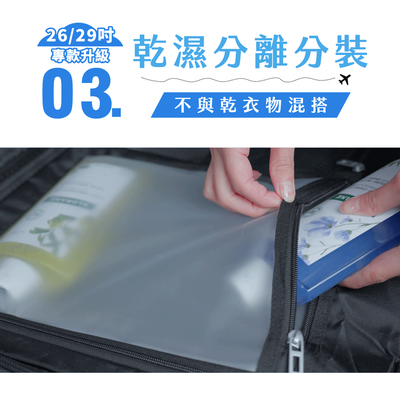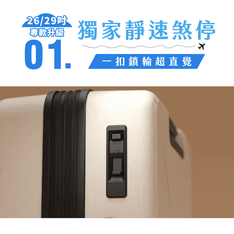 ● 26/29吋出國升級,煞車雙輪/提袋掛勾設計/俐落大容量